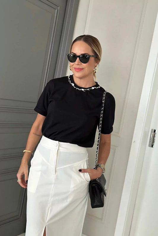 PromoçãoBlusa Crepe Decote V com Entremeios