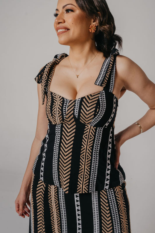 Conjunto Algodão Saia Três Marias Listras Douradas Felicity